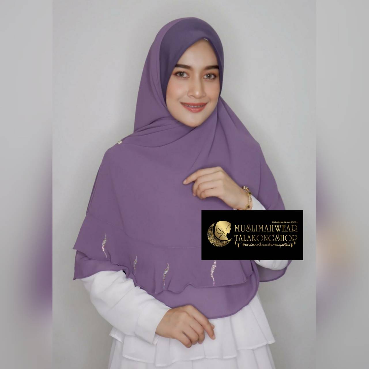 ฮีญาบ hijab สวมสำเร็จ งานแบรนด์แท้นำเข้า khimar ใส่ได้หลายแบบตามต้องการ เก๋ๆ ไม่ซ้ำใคร ชีฟองสองชั้น แต่งระบาย พร้อมติดเพชร เนื้อผ้า ชีฟองอย่างดี ทรงหน้า สคูบา ใช้เพชร Copy Swarovki