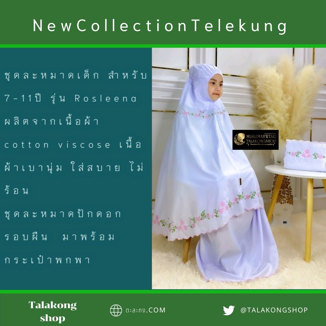 ชุดละหมาดเด็ก สำหรับเด็ก 7-11ปี รุ่น Rosleena ผลิตจากเนื้อผ้า contton viscose เนื้อผ้านุ่มเบาใส่สบายไม่ร้อน รุ่นนี้ปักดอกรอบผืนมีกระเป๋าสำหรับพกพา