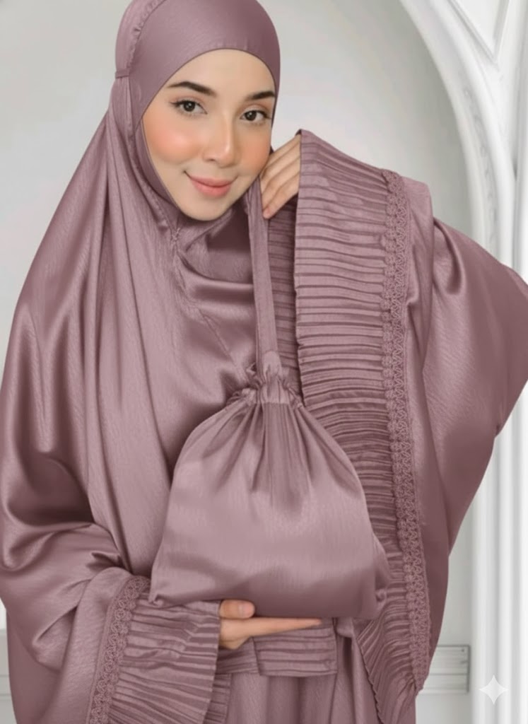 ชุดละหมาดตะละกง พร้อมส่ง แถมฟรี! กระเป๋าพกพาเข้าชุด