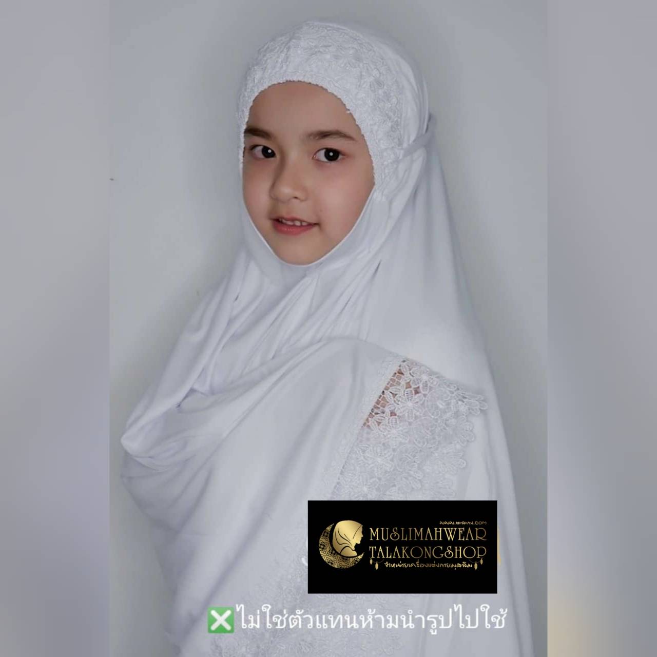 ชุดละหมาดเด็กแต่งลูกไม้รอบผืน แต่งลูกไม้ตัดขอบ เนื้อผ้า viscose #อายุ4-7ปี