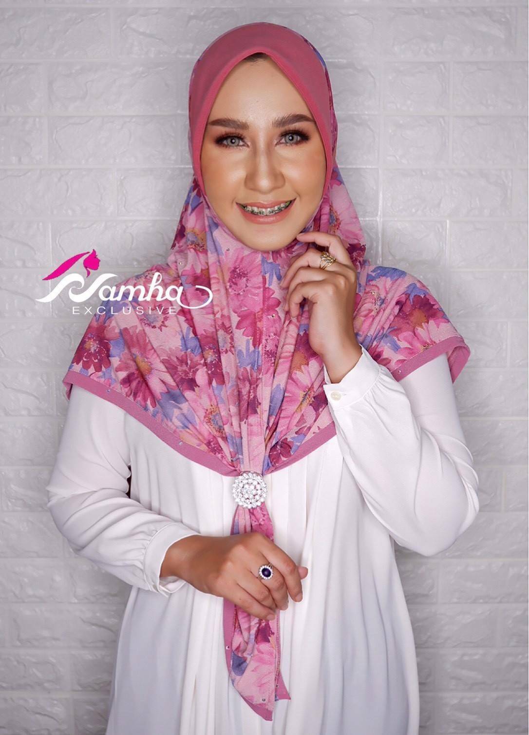 ฮิญาบผ้าคลุมบาวามีทรงผ้าลาย งานแบรนด์Namhaเนื้อผ้า Mosscrepeทรงหน้าscubaขนาดความกว้าง50