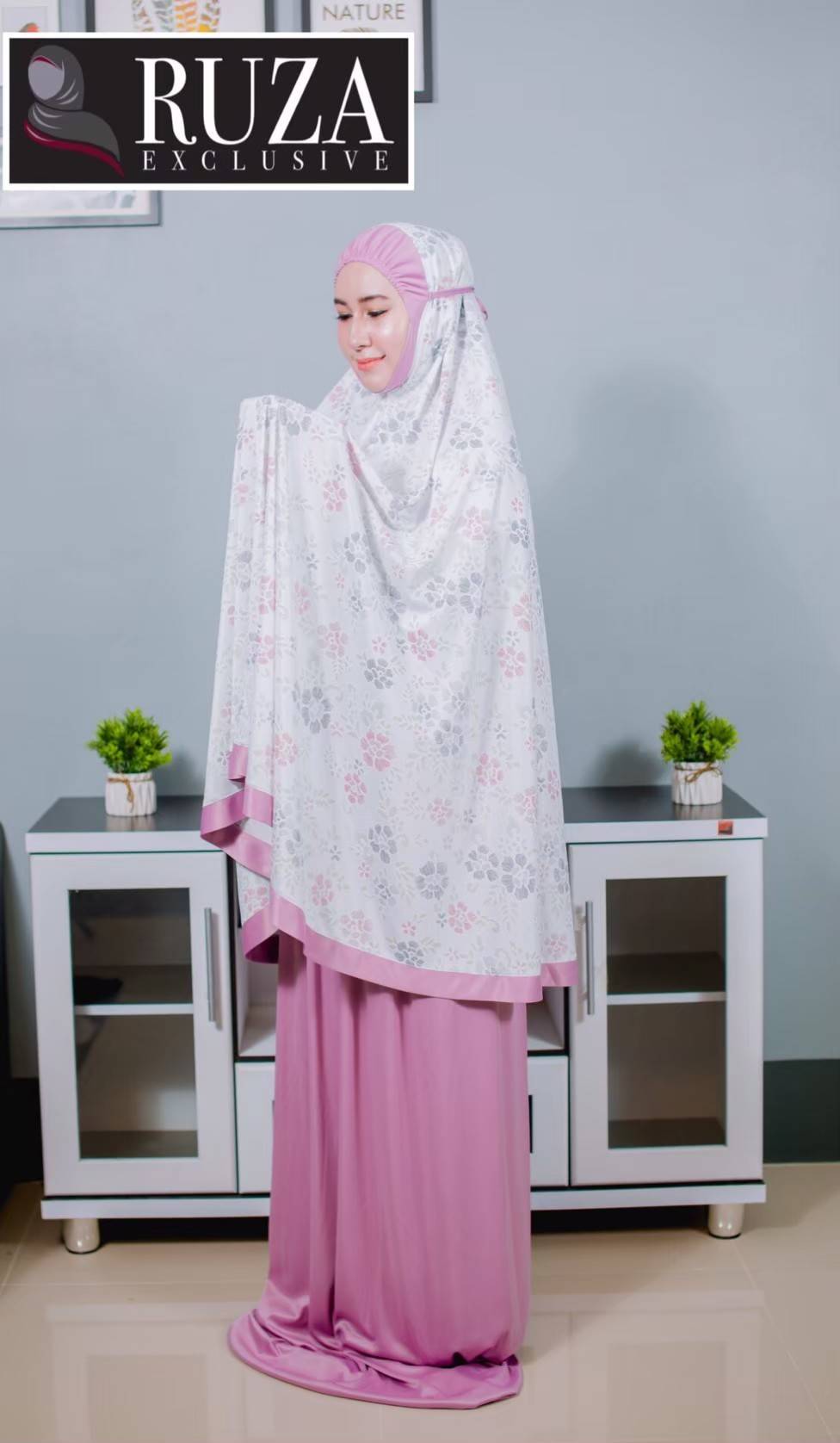 ชุดละหมาด RUZA พร้อมส่ง สีโอรส เทา ชมพู เนื้อผ้า satin jercy รอบหน้าเป็นยางยืดขยายตามรูปหน้าไม่เกิน 12นิ้ว ฟรีไซซ์ สูง 145-165 cm ใส่ได้