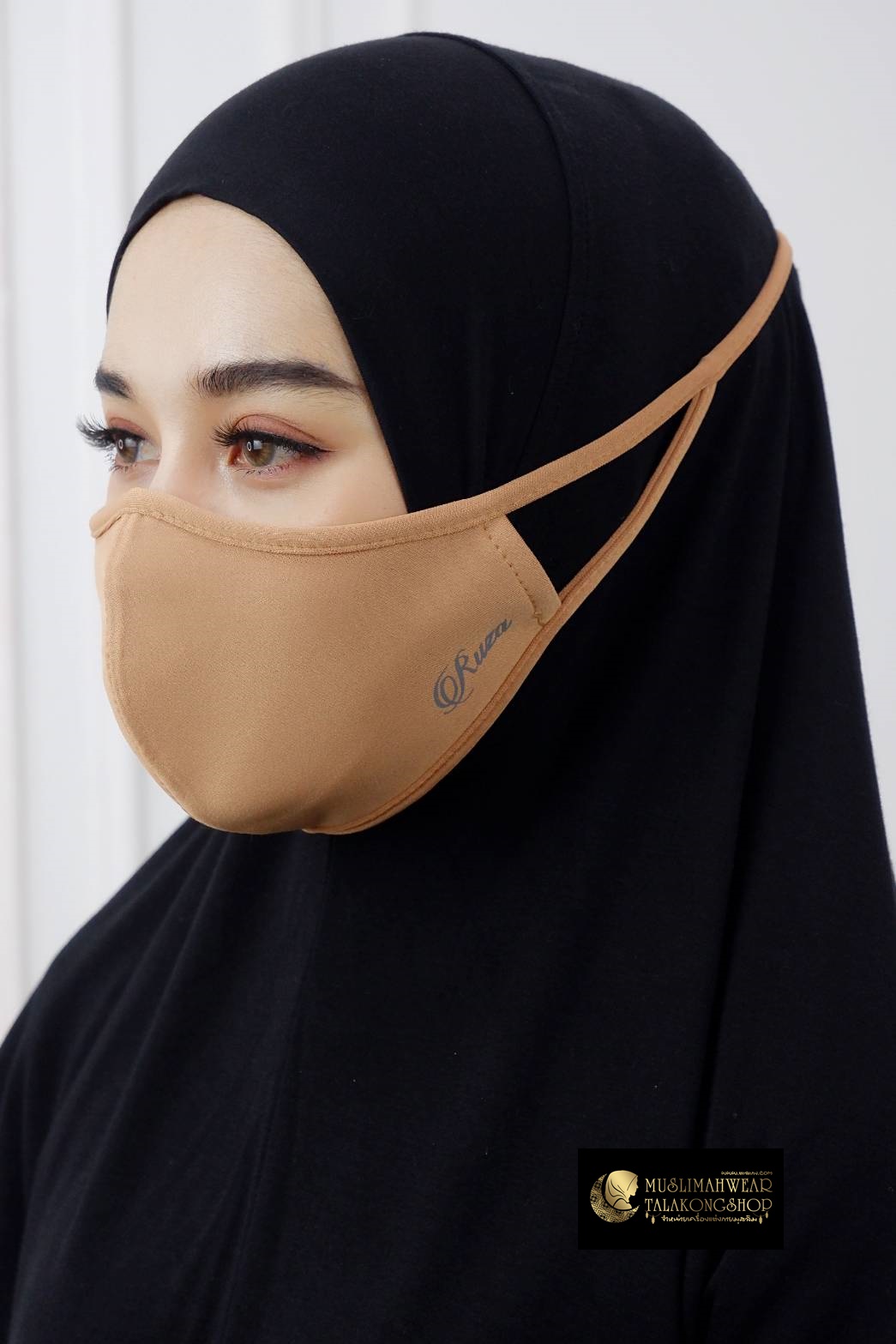 แมสสำหรับสาวมุสลิม หน้ากากผ้า 2 ชั้น เนื้อผ้า stretchable lycra เหมาะกับสาวๆที่สวมฮีญาบ ใส่ง่าย ไม่ต้องเกี่ยวหู แค่ผูกหลัง