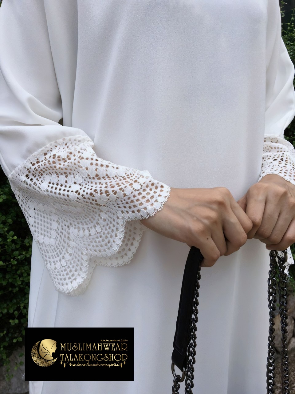 Abaya basic ผ้าสวย ใส่สบาย พร้อมแขนระบายลูกไม้ เรียบๆแต่หรู ดูมีคลาส