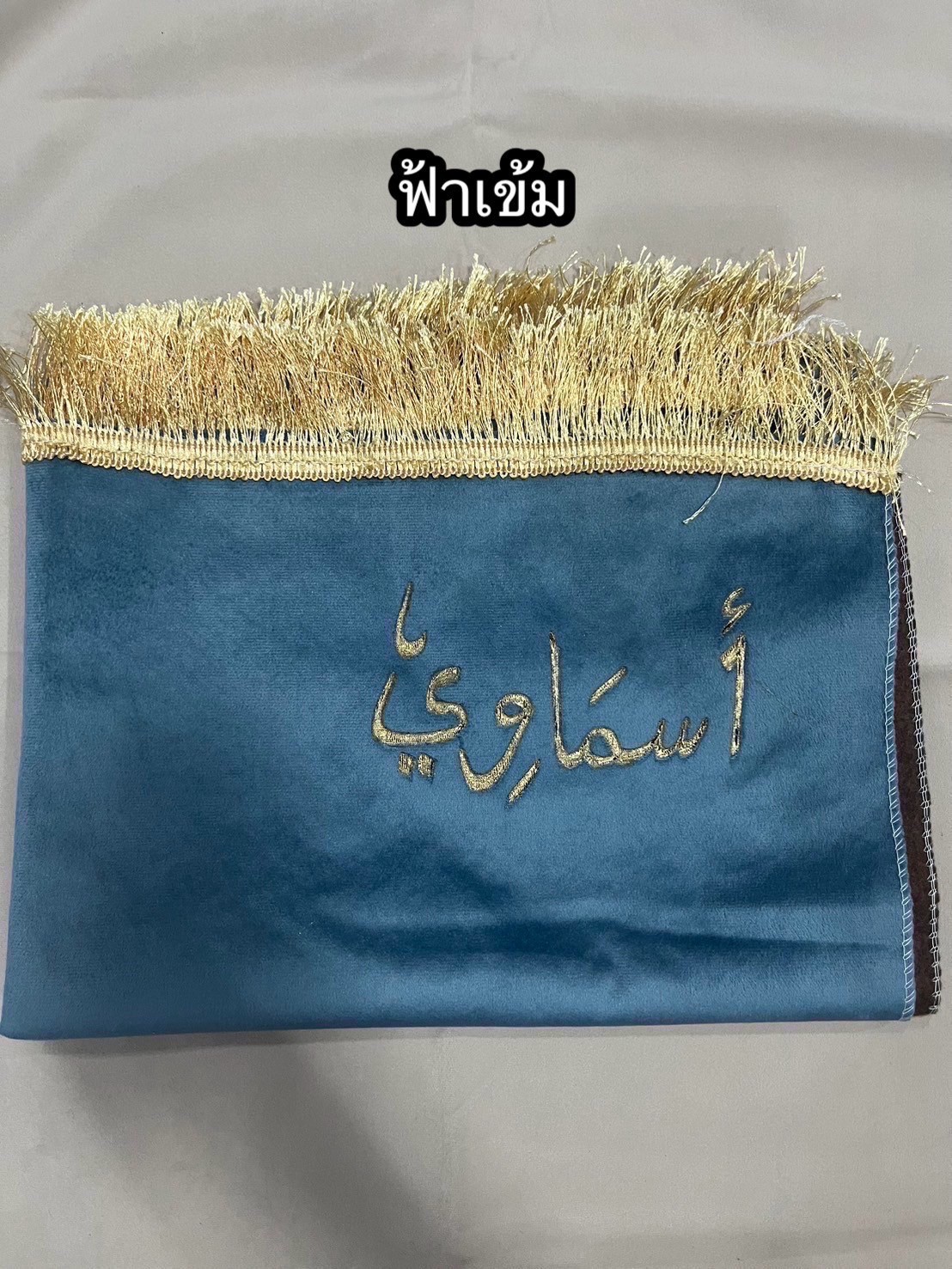 ผ้าปูละหมาดสลักชื่อ พรมปูละหมาดสลักชื่อ ผ้าปูละหมาดนำเข้าซาอุ ผ้าปูละหมาดซื้อเป็นของขวัญ พรมปูละหมาดซื้อใช้เอง ราคา 420บาทส่งฟรี พิมพ์ได้2ภาษา อาหรับ กับ อังกฤษ ภาษาที่2เพิ่ม 30บาทคะ