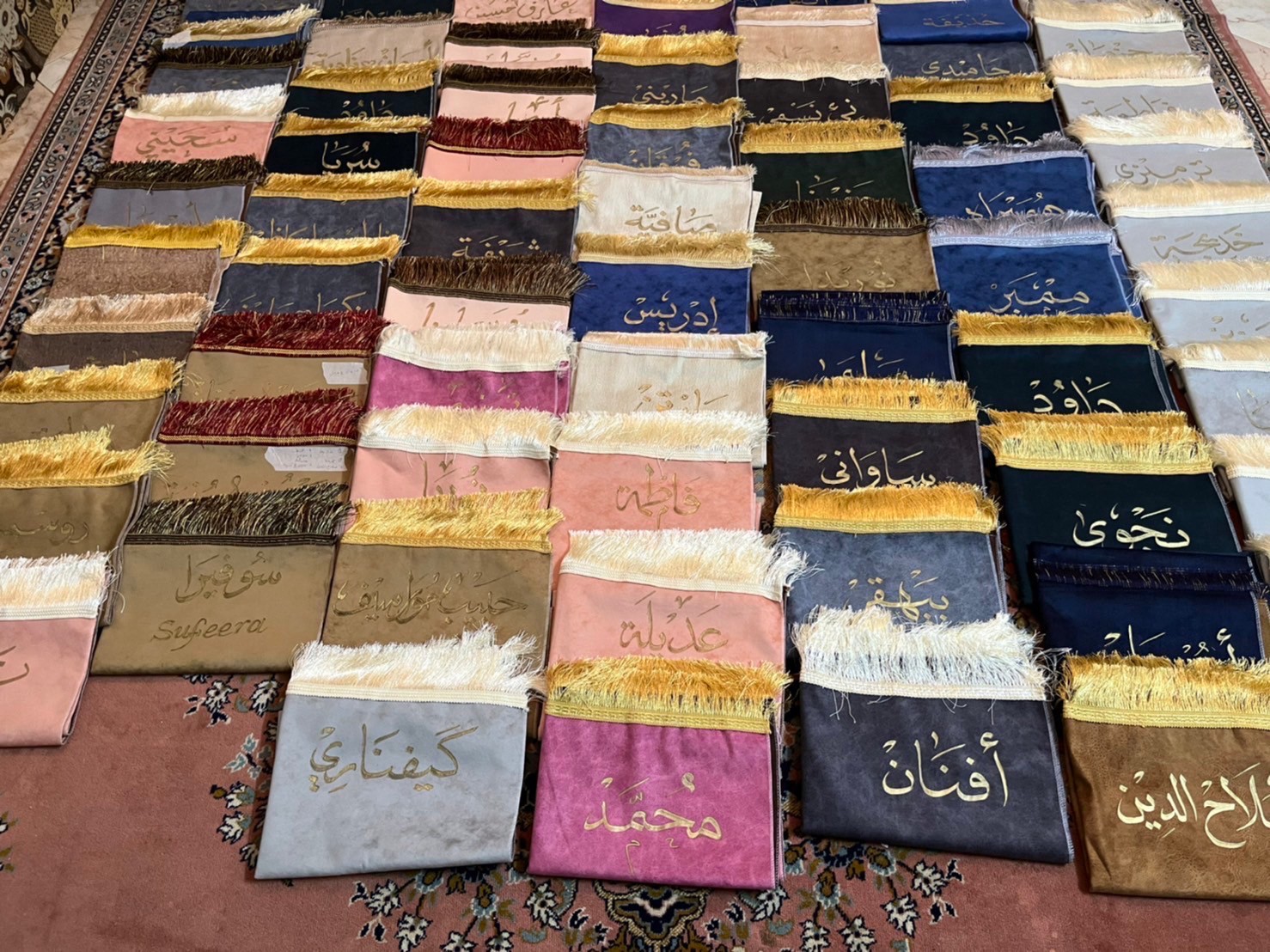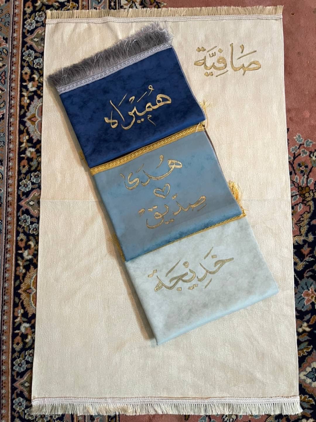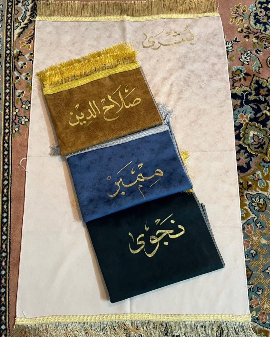 ผ้าปูละหมาดสลักชื่อ เนื้อผ้ากัมหยี่นุ่มมากคะ มีน้ำหนักเบา พกพาสะดวก จะซื้อใช้เองหรือซื้อเป็นของขวัญก็ดีค่ะ อิมพอร์ตจากซาอุ